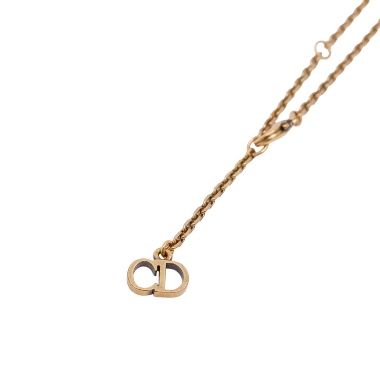 Collar Christian Dior, fabricado en metal dorado con dije de cristal multicolor en forma de corazón.