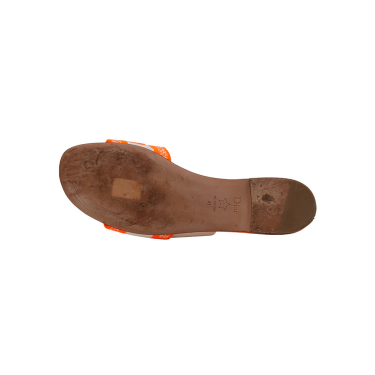 Sandalias Christian Dior elaboradas en jaquard grabado con la marca en color naranja y suela de cuero. CALZADO DE SEGUNDA MANO EN BUEN ESTADO.